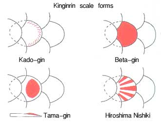 Bij dit type zijn alleen de randen van de schubben iriserend. 'CADEAU' betekent dan ook 'rand'. Dit type is minder populair in Japan.