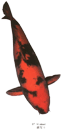 Een UTSURI waarbij de tweede kleur rood is, meestal zie je dat het meer oranje is dan het dieprood wat het moet zijn. Een goede kwaliteit HI UTSURI is moeilijk te vinden, ook hier moeten de borstvinnen weer een aanzet van zwart hebben.