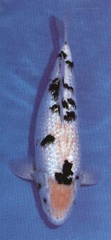 Een BEKKO waarbij de basiskleur wit is en de Koi een zwarte vlek(ken) heeft, het wit moet echt zo sneeuwwit mogelijk zijn, op de kop waar de huid dunner is kan een gele gloed ontstaan dit is echter niet optimaal, maar er zijn al SHIRO BEKKO`S geweest die in de prijzen vielen die dit hadden.