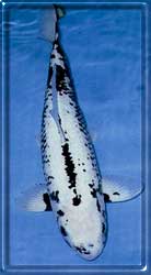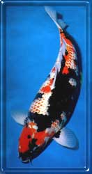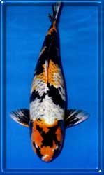 Een kruising van Showa en een Shusui, de Koi heeft op de rug een licht blauwe kleur.