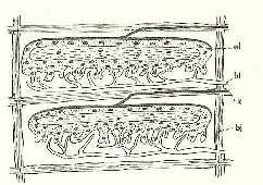 zijn onderling door bindweefsel gescheiden en tot zuilen verenigd, fig. 3.
