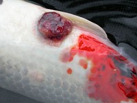 en buikvlies. De vissen hebben soms evenwichtsstoornissen. Ademhalingproblemen