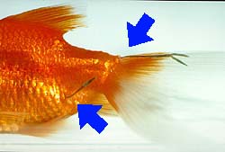 De vissen schuren, kunnen uit het water springen, zonderen zich af, eten amper, met gevolg dat ze behoorlijk zwak worden. Daarnaast zijn er ook secundaire infecties waarneembaar. Dit komt omdat de worm zich op de huid van de vis vastzet, en door de huid heen prikt om bloed te kunnen zuigen. Vervolgens als de worm loslaat, zien we de beschadigingen op de huid. Tevens laat de worm ook een giftig stofje (verteringssappen) achter die ervoor zorg dat de vissen vermageren en zwak worden, waardoor de vis extra vatbaar wordt.