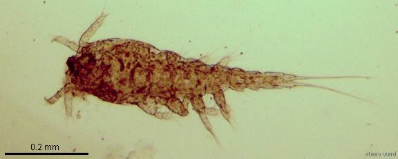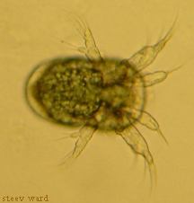 Een microscopisch onderzoek is niet nodig, omdat de Lernea met het menselijke oog zijn waar te nemen.