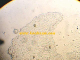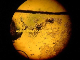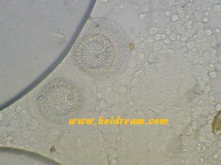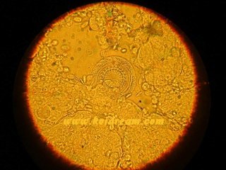 Trichodina is bij een vergroting van 100-200 keer door de microscoop goed te zien. De parasieten zijn rond en bevatten aan de buitenkant heel veel Ciliaten. In het midden van de cel is ook soms een halfronde grote celkern te zien. Aan de onderkant van de parasiet zit een ring met haakjes, waarmee zij zich kunnen vasthechten op de vishuid. Vaak vindt men Trichodina in combinatie met andere parasieten.