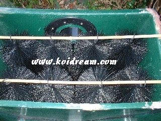 Voor mijn vijver van ruim 24.000 liter in Elst, had ik een goed filter nodig. Ik heb daarom gekozen voor een 5-kamerfilter en apart voorzien van een vortex, zodat het systeem uit totaal 6 kamers bestaat. Ook heb ik er een UV-Unit tussen geplaatst. Later is de vortex er tussenuit gehaald, en moesten de borstels het grofste vuil opvangen. Alleen heb ik achter de 5-kamerfilter een beadfilter tussen geplaatst en een Ozon-Unit erbij.