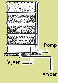 vijver. Men kan de Tricklefilter zelf zo hoog maken als men wil.