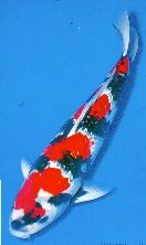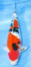 Bij dit type glinstert een puntje van de schub, bij oudere KOI`s verdwijnt dit meestal.