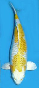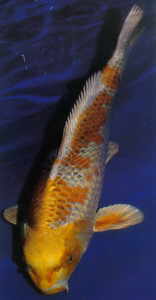 YAMABUKI betekent heldergeel. Het is een zilverkleurige koi met metaalachtige gele vlekken die evenwichtig over het lichaam verspreid moeten zijn. Mooiste is een zilverkleurige kop zonder andere kleuren.