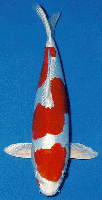 KIN betekent goud, het is een Koi uit de Shusui klasse met veel rood.De glans is bij jonge koi altijd mooier dan bij de oudere exemplaren