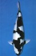 Het is een zwarte KOI met witte tekeningen, waarbij het zwart lijnen zou moeten hebben over het lichaam met een goudachtige glans over het hele lichaam hebben.