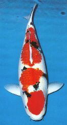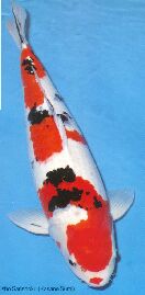 zwarte vlekken(Zwarte vlekken heeft de KOHAKU niet), net als bij de KOHAKU