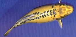 de staart en de rug vinnen helemaal wit zijn en ook het hoofd is wit.(zeldzaam).