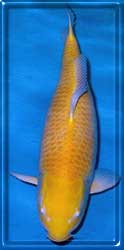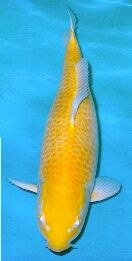 Een egaal gele Koi, helaas verliest hij vaak zijn kleur.