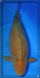 koi die erg snel tam te maken is en daardoor populair is, Hij komt ook in