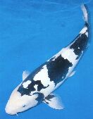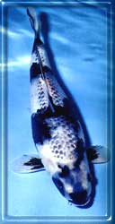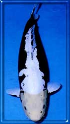 Een kruising van Showa en een Shusui, de Koi heeft op de rug een licht blauwe kleur.