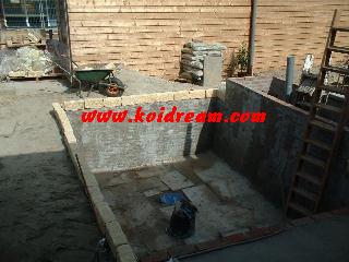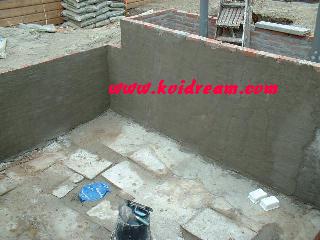 lijm droog was, heb ik de binnen kant van de vijver ingesmeerd met cement.