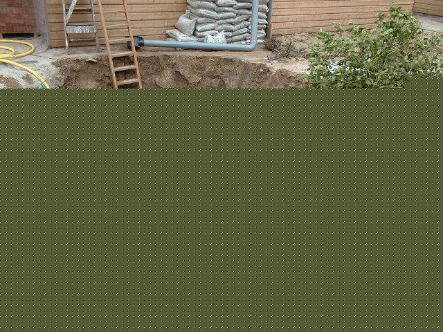 Tja Nat bleef het in ieder geval, onlangs dat ik er zeil over had gedaan en er droog zand overheen heb gedaan! En zo kan je eigenlijk ook niet werken! Dus ik had zoiets van: met zeil houd je water in het gat als je bv een vijver heb, nu moet ik het water er buiten houden! Dus dacht: plaats er een wat groter en beter zeil in!!