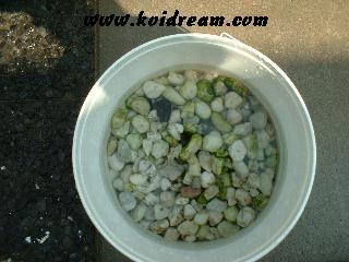 Een paar weken geleden, heb ik een plant in de vijver gezet. Heb hem netjes in een mandje gedaan. En heb hiervoor een oude panty gebruikt. Alleen om die panty te af te dekken zodat hij niet opvalt, had ik er een klein laagje grind over heen gedaan. En moet zeggen, dat ging goed! Alleen wat wil nu het geval, een paar dagen later heb ik een grote steur de vijver in gedaan! Met gevolg dat deze al die steentjes uit de bak heeft gehaald, dit vermoedelijk uit wraak omdat ik hem even op quartairne had gedaan??